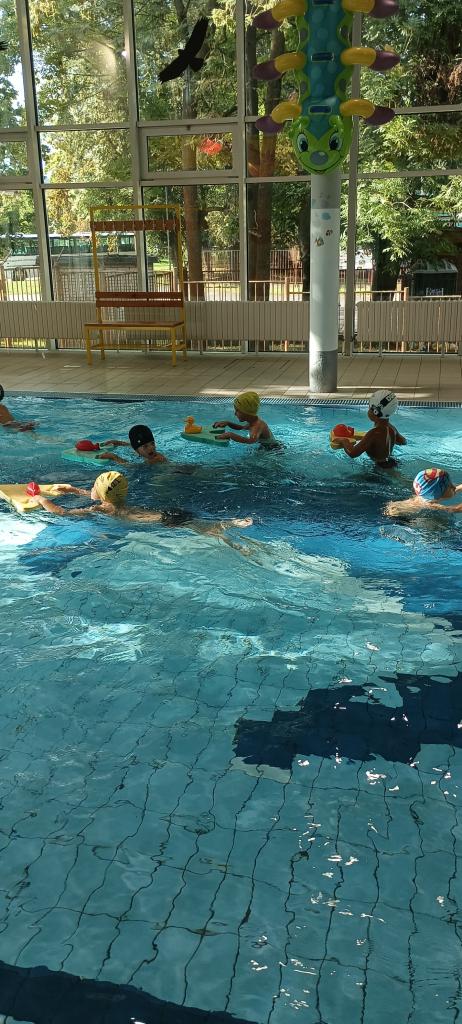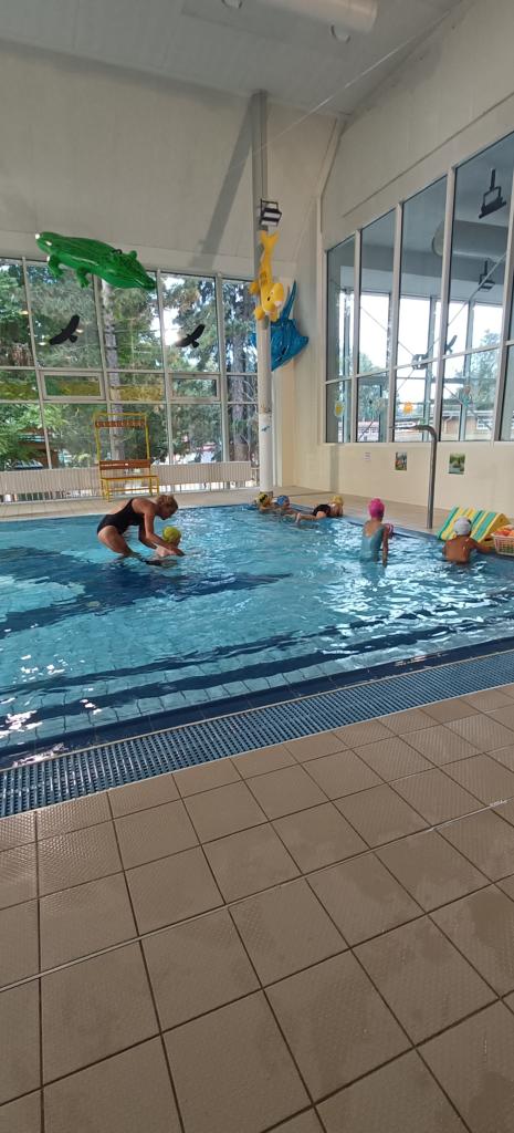 Od září předškoláci a starší děti navštěvují plavecké kurzy v bazénu v Rokycanech. Celkem je čeká 9 lekcí a zakončení mokrým vysvědčením.
